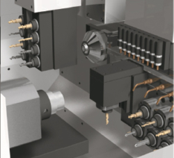 Für Fräszentren entwickelte Hochgeschwindigkeits-/ Hochgenauigkeits- Steuerungsfeatures sind jetzt auch für Drehzentren verfügbar. Schlichtfräsen in Hochgeschwindigkeit ist nun für Drehzentren realisiert. Diese CNC ermöglicht den Einsatz von Servomotoren anstelle eines Spindelmotors für angetriebene Werkzeuge. Jede Servoachse kann selbst über die Multi-Hybrid- Regler als angetriebenes Werkzeug eingesetzt werden. Dies trägt zum Downsizing von Werkzeugmaschinen bei.